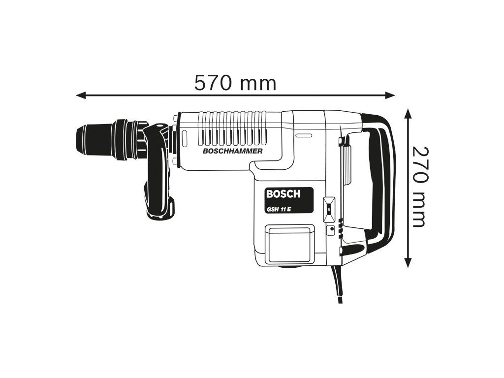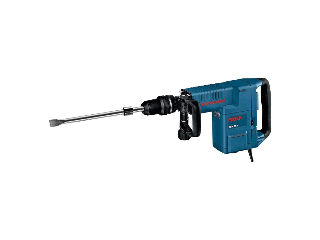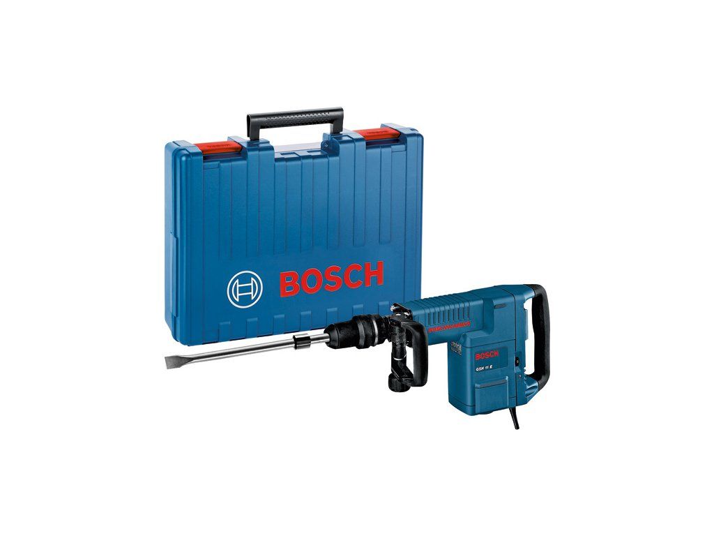Sekací kladivo s SDS max GSH 11 E, Jedná se o nejvýkonnější nářadí na horizontální sekání v kategorii síťových sekacích kladiv Bosch SDS max. Mimořádně výkonný motor přináší příklepovou energii úžasných 16,8 J, čímž zajišťuje působivě vysoký úběr materiálu. Toto sekací kladivo se rovněž pyšní velkou odolností díky svým mimořádně robustním kovovým dílům. Kompaktní konstrukce navíc umožňuje snadnou manévrovatelnost a manipulaci. I když je toto nářadí určeno na horizontální sekání do betonu a kamene, funguje také neuvěřitelně dobře při vertikálním použití. Je kompatibilní s nástavcem na odsávání prachu GDE max Professional. Mezi další funkce nářadí patří posuvný spínač s aretací, funkce Constant Speed, Speed Selection a Vario-Lock. Přídavná rukojeť ( 2 602 025 076); Příruční kufr (2 605 438 297); 1× plochý sekáč, SDS max, RTec Sharp, 400 mm (2 608 690 124); Tuba s mazacím tukem (číslo náhradního dílu 1 615 430 010); Utěrka na nářadíDoplňkové parametry