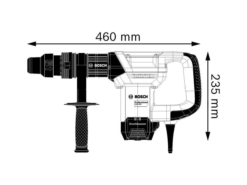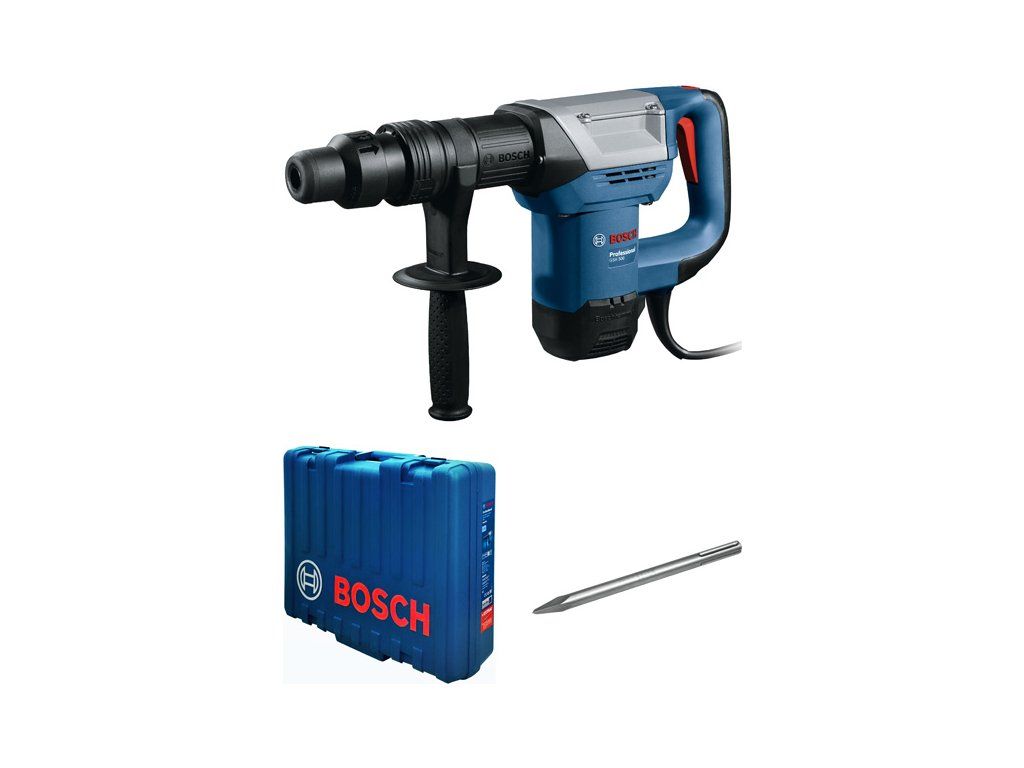 Sekací kladivo s SDS max GSH 500, Nové sekací kladivo GSH 500 Professional je perfektní na lámání a sekání betonu, kamene a zdiva. Přináší vynikající výkon a úžasnou intenzitu příklepu pro rychlejší sekání. Velká rukojeť a vylepšený příklepový systém zajišťují větší efektivitu nářadí během sekání. Nářadí je zároveň vybaveno těsnicím kroužkem, které brání úniku maziva, a prachovým krytem pro lepší ochranu před prachem. Nabízí rovněž design Vario Lock s jednoručním ovládáním a 12 nastaveními bitu, které zajišťují pohodlnou práci v jakékoli poloze. Kladivo GSH 5 SDS max obsahuje také tlačítko vario-lock a lock-on. Příruční kufr; Přídavná rukojeť (1 619 P14 935); 1× špičatý sekáč, SDS max, 280 mm (1 618 600 023)Doplňkové parametry