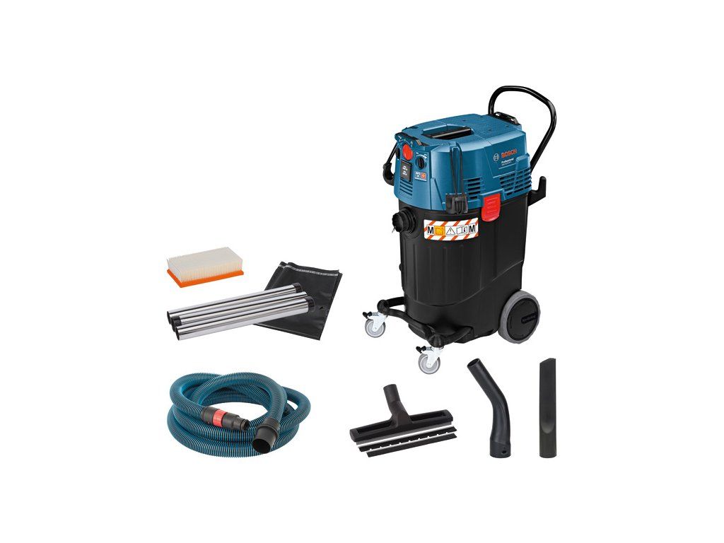 Síťový vysavač GAS 55 M AFC, Síťový vysavač GAS 55 M AFC Professional s automatickým čištěním filtru je všestranný vysavač Bosch třídy M pro mokré i suché vysávání. Technologie automatického čištění filtru zajišťuje konzistentní a výkonné sání pro velmi rychlý postup práce. Jako důkaz zvýšené ochrany uživatele je certifikován jako vysavač třídy M v souladu s normami EU. Rovněž se vyznačuje mimořádně výkonnou 1 380W sací turbínou, která zajišťuje vysoký podtlak 254 mbar pro nejlepší výsledky odsávání. Dodává se s nádobou o objemu 55 litrů a je kompatibilní se systémem Bosch Click & Clean. L-BOXX lze pohodlně zacvaknout do GAS 55 M AFC Professional, které poskytuje praktické přepravní řešení pro vylepšenou mobilitu. Štěrbinovitá hubice, průměr 35 mm (2 607 000 165); Odpadní sáček (2 607 432 043); Koleno (2 608 000 573); Podlahová hubice, průměr 35 mm (1 609 390 478); 1× plochý skládaný filtr PES (2 607 432 034); 3× 0,35m sací trubice chromovaná, 35 mm průměr (2 608 000 575); Hadice 5 m, průměr 35 mm, antistatická, s objímkou pro nářadí (2 608 000 566)Doplňkové parametry