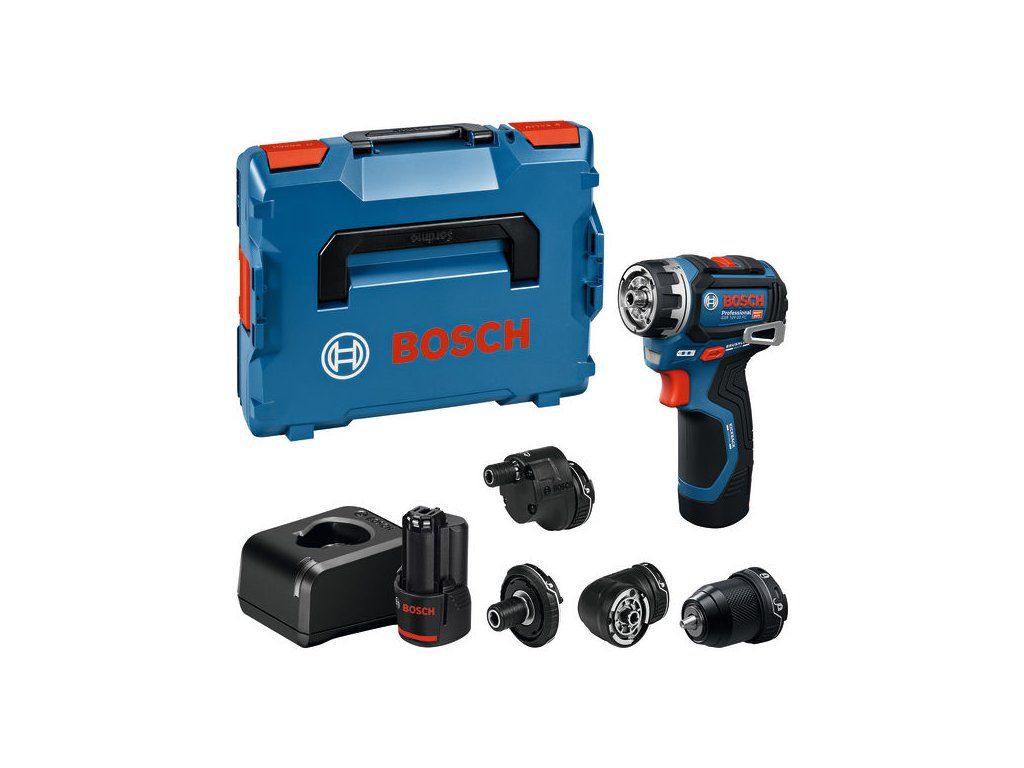 Šroubovák GSR 12V-32 FC, Akumulátorové nářadí PRO GSR12V-32 FC nabízí nejlepší kontrolu díky technologii Advanced KickBack Control. Tato technologie minimalizuje riziko zranění, pokud se vrták náhle zasekne nebo se nářadí pomalu otáčí kolem své osy vrtání a přídržná síla se pomalu zvyšuje. Tento vrtací šroubovák je vysoce všestranný díky systému Bosch Professional FlexiClick se snadno vyměnitelnými nástavci pro vrtání a šroubování. Nářadí je díky své vysoce kompaktní konstrukci ideální pro vrtání a šroubování ve stísněných prostorách. S jedinečným nástavcem vrtacího kladiva PRO GFA12-H lze nářadí přeměnit na vrtací kladivo SDS plus, připravené na příklepové vrtání do betonu až do Ø10 mm. Excentrický nástavec PRO GFA12-E usnadňuje přesnou práci v blízkosti okrajů a stěn, zatímco pravoúhlý nástavec PRO GFA 12-W promění vrtací šroubovák v úhlovou vrtačku. Tyto nástavce lze nastavit do 16 různých poloh v úhlu 360° bez odepínání z nářadí. Nástavce FlexiClick mohou nahradit specializované nářadí pro příležitostné použití, což znamená nižší hmotnost při přenášení na stavbě. Systém Bosch Professional FlexiClick: Dokonale vybavené pro profesionální práci. PRO GSR12V-32 FC je perfektní pro všechny způsoby šroubování a vrtání do dřeva či kovu a v kombinaci s PRO GFA 12-H i betonu, zdiva a kamene. Další informace: PRO GSR12V-32 FC je vybaven funkcí Advanced KickBack Control, bezuhlíkovým motorem, jasným pracovním světlem a sponou na opasek. L-BOXX 102 (1 600 A01 2FZ); 2× akumulátor GBA 12V 2.0Ah (1 600 Z00 02X); Nabíječka GAL 12V-20 Professional; Kovový nástavec s vrtacím sklíčidlem GFA 12-M (1 600 A03 7MD); Nástavec s držákem bitů GFA 12-X (1 600 A00 F5J); Excentrický nástavec GFA 12-E (1 600 A00 F5L); Pravoúhlý nástavec GFA 12-W (1 600 A00 F5K)Doplňkové parametry