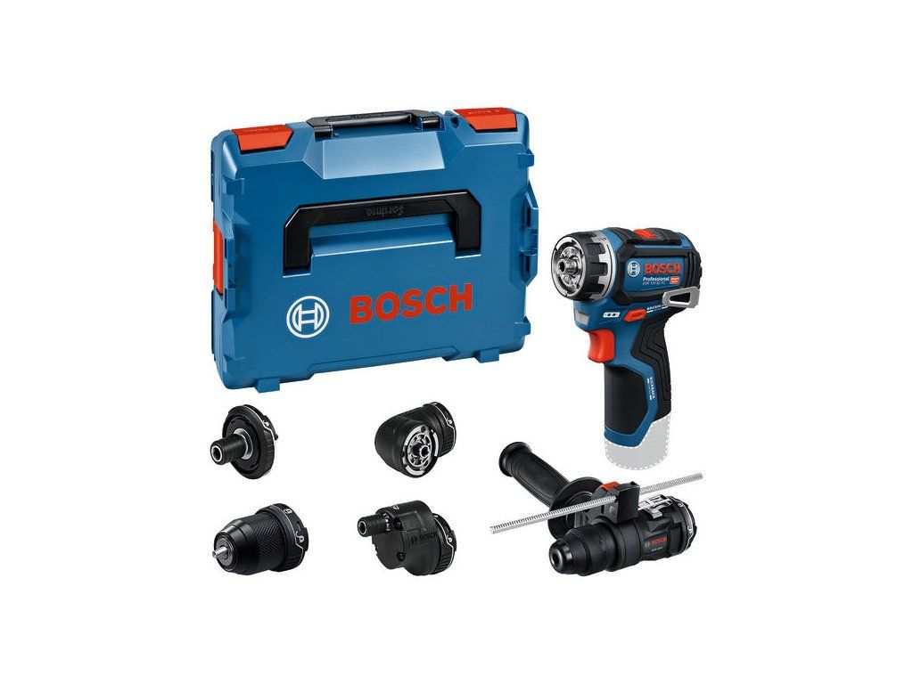 Šroubovák GSR 12V-32 FC, Akumulátorové nářadí PRO GSR12V-32 FC nabízí nejlepší kontrolu díky technologii Advanced KickBack Control. Tato technologie minimalizuje riziko zranění, pokud se vrták náhle zasekne nebo se nářadí pomalu otáčí kolem své osy vrtání a přídržná síla se pomalu zvyšuje. Tento vrtací šroubovák je vysoce všestranný díky systému Bosch Professional FlexiClick se snadno vyměnitelnými nástavci pro vrtání a šroubování. Nářadí je díky své vysoce kompaktní konstrukci ideální pro vrtání a šroubování ve stísněných prostorách. S jedinečným nástavcem vrtacího kladiva PRO GFA12-H lze nářadí přeměnit na vrtací kladivo SDS plus, připravené na příklepové vrtání do betonu až do Ø10 mm. Excentrický nástavec PRO GFA12-E usnadňuje přesnou práci v blízkosti okrajů a stěn, zatímco pravoúhlý nástavec PRO GFA 12-W promění vrtací šroubovák v úhlovou vrtačku. Tyto nástavce lze nastavit do 16 různých poloh v úhlu 360° bez odepínání z nářadí. Nástavce FlexiClick mohou nahradit specializované nářadí pro příležitostné použití, což znamená nižší hmotnost při přenášení na stavbě. Systém Bosch Professional FlexiClick: Dokonale vybavené pro profesionální práci. PRO GSR12V-32 FC je perfektní pro všechny způsoby šroubování a vrtání do dřeva či kovu a v kombinaci s PRO GFA 12-H i betonu, zdiva a kamene. Další informace: PRO GSR12V-32 FC je vybaven funkcí Advanced KickBack Control, bezuhlíkovým motorem, jasným pracovním světlem a sponou na opasek. L-BOXX 102 (1 600 A01 2FZ); Kovový nástavec s vrtacím sklíčidlem GFA 12-M (1 600 A03 7MD); Nástavec s držákem bitů GFA 12-X (1 600 A00 F5J); Excentrický nástavec GFA 12-E (1 600 A00 F5L); Pravoúhlý nástavec GFA 12-W (1 600 A00 F5K); Nástavec vrtacího kladiva GFA 12-H (1 600 A02 4LN); Přídavná rukojeť; Hloubkový doraz (1 613 001 009)Doplňkové parametry