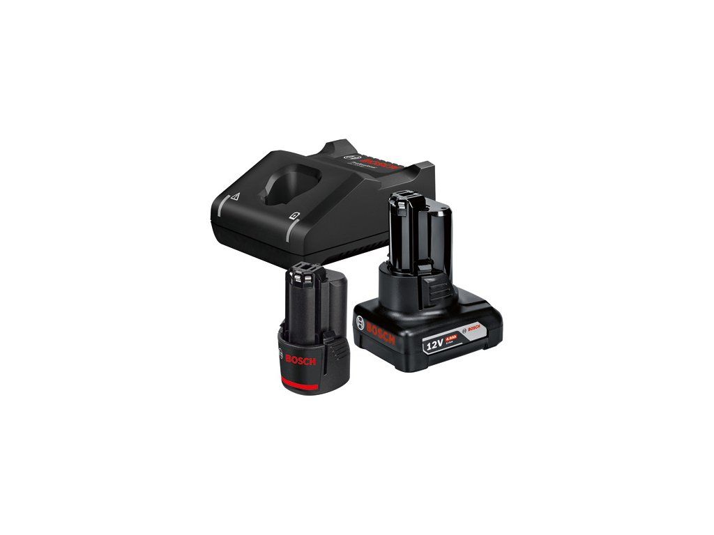 Startovací sada 1× GBA 12V 2.0Ah + 1× GBA 12V 4.0Ah + GAL 12V-40, Kombinace kompaktnosti a dlouhé výdrže 12V baterie s rychlou nabíječkou, GBA 12V 2.0Ah jako kompaktní a lehký akumulátor a GBA 12V 4.0Ah poskytující prodlouženou dobu chodu pro celou řadu 12V nářadí, GAL 12V-40: rychlé nabíjení veškerých 12 V akumulátorů. Nabíjení 12V akumulátoru s kapacitou 2,0 Ah z 0 na 80 % během 24 minut., Kompatibilní se veškerým 10,8V a 12V nářadím Bosch Professional (profesionální 12V systém), 1× akumulátor GBA 12V 2.0Ah (1 600 Z00 02X); 1× akumulátor GBA 12V 4.0Ah (1 600 Z00 02Y); Rychlonabíječka GAL 12V-40 Professional (1 600 A01 9R3); Kartonová krabiceDoplňkové parametry