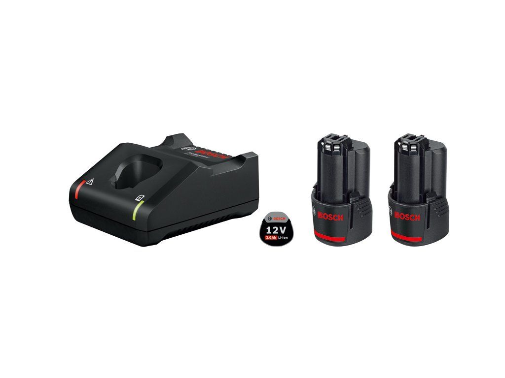 Startovací sada 2× GBA 12V 3.0Ah + GAL 12V-40, 2× akumulátor 12 V s kapacitou 3,0 Ah a rychlonabíječkou, Kompatibilní od roku 2005: všechny naše akumulátory jsou kompatibilní s novým i stávajícím nářadím Bosch Professional stejné napěťové třídy., GAL 12V-40: Rychlé nabíjení všech 12V akumulátorů. Nabíjení 12V akumulátorů s kapacitou 3,0 Ah z 0 na 80 % během 36 minut., GBA 12V 3.0Ah: Vyšší kapacita akumulátoru poskytuje o 50 % delší dobu chodu než model 12V 2.0 Ah Professional, Kartonová krabice; 2× akumulátor GBA 12V 3.0Ah (1 600 A00 X79); Rychlonabíječka GAL 12V-40 Professional (1 600 A01 9R3)Doplňkové parametry