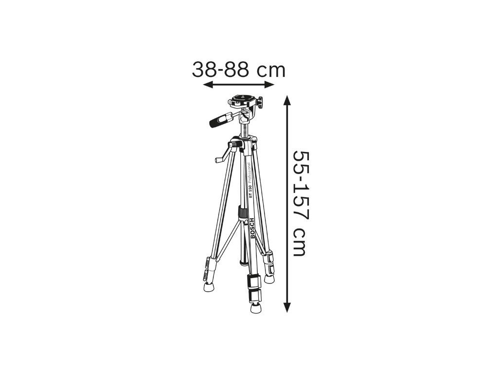 Stavební stativ BT 150, Absolutně stabilní na každém podkladu, Robustní hliníkové provedení, Pro pracovní výšky 55 až 157 cm, Funkčnost a přesnost díky krabicové libeleDoplňkové parametry