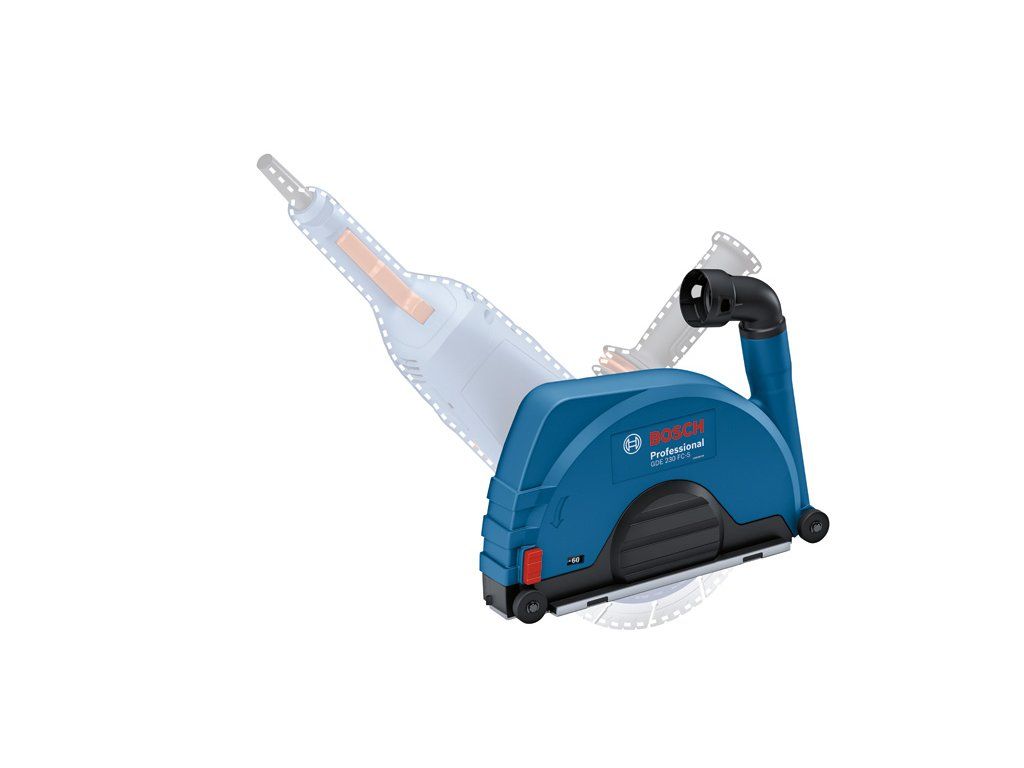 Systémové příslušenství GDE 230 FC-S, GDE 230 FC-S Professional je celoplošný kryt proti prachu Bosch pro úhlové brusky se standardními ochrannými kryty a průměrem kotouče 230 mm. Jeho plný tvar zajišťuje vylepšené odsávání prachu pro prakticky bezprašnou práci. Pohodlné 360° připojení mezi úhlovou bruskou a vysavačem umožňuje snadnou manipulaci. Nastavitelná hloubka řezu a integrovaná kolečka podporují přesnou práci. Kryt proti prachu je kompatibilní se systémem Bosch Click & Clean a také s mnoha úhlovými bruskami se standardními ochrannými kryty.Doplňkové parametry