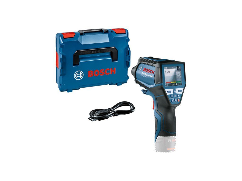 Termodetektor GIS 1000 C, Termodetektor GIS 1000 C Professional je hbité řešení na přesné měření a dokumentaci teplot a relativní vlhkosti. Přístroj během měření pomocí zabudované kamery pohodlně zaznamenává snímky pro okamžité znázornění příslušných hodnot. Aplikace Bosch ThermalOn připojená přes Bluetooth® zajišťuje rychlou dokumentaci podrobných dat a vzdálený přenos na jiná zařízení. Termodetektor zajišťuje záznam teploty a profesionálním uživatelům nabízí pět různých režimů pro komplexní povrchové a kontaktní měření teploty (s integrovanou funkcí K-typ), výpočet rosných bodů a tepelných mostů, a uživatelský režim pro nastavení vlastních hodnot. Profesionálové mohou termodetektor používat na celou řadu prací, od odhalování rizika výskytu plísní po kontrolu tepelných mostů i na přesné kontaktní měření odrazivých povrchů, kapalin a přímé teploty vzduchu. Kromě měření povrchových a kontaktních teplot čidlo termodetektoru GIS 1000 C Professional rychle sleduje okolní podmínky pro zajištění přesného měření pokojové teploty a relativní vlhkosti při ještě širší škále prací. Intuitivní uživatelské rozhraní umožňuje snadné ovládání a zajišťuje vysoce přesné výsledky s velkým rozsahem měření. GIS 1000 C Professional není vhodný pro lékařské účely. L-BOXX 136 (1 600 A01 2G0); Vložka na nářadí pro L-BOXX; Karta se stručným návodem; Kabel mikro USB (2 609 120 670)Doplňkové parametry