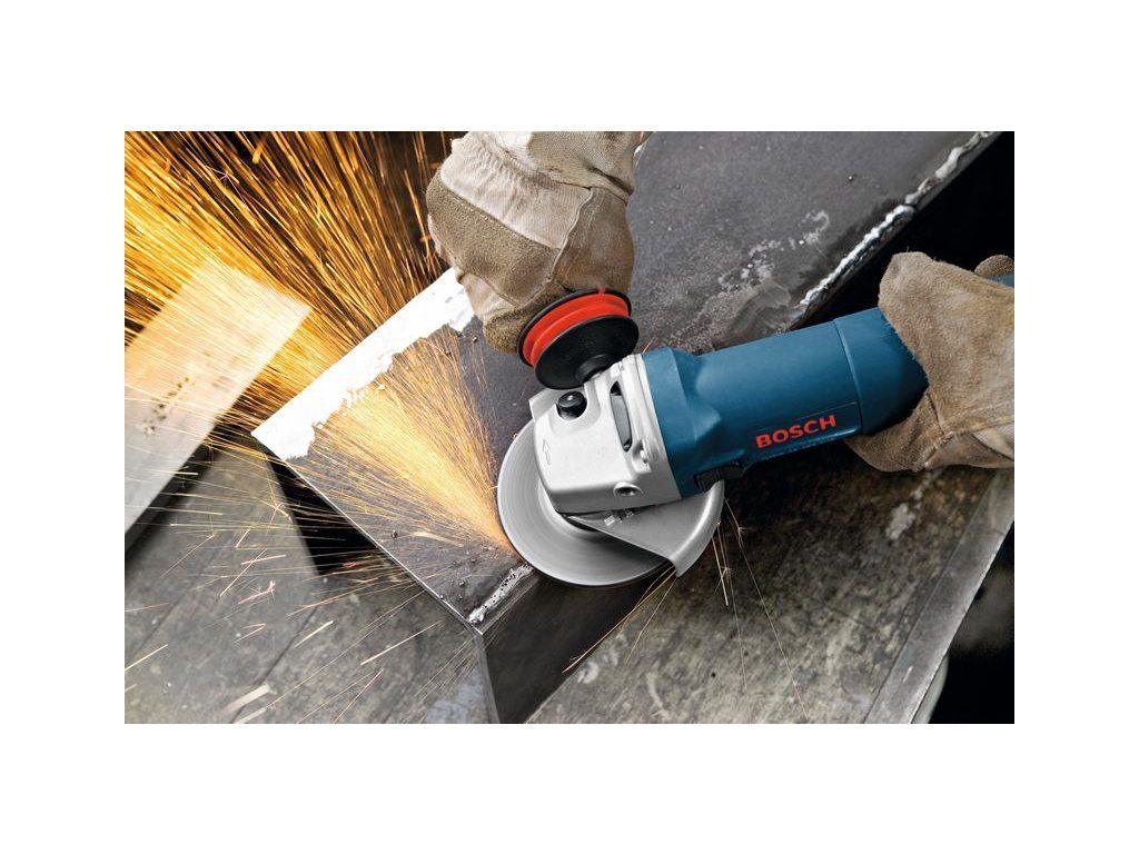 Úhlová bruska GWS 1400, Síťová úhlová bruska GWS 1400 Professional nabízí výkon při náročném broušení a všestrannost na běžné používání v kategorii 1 400 W. Systém konstantní elektroniky udržuje konstantní otáčky během provozu i pod zatížením. Díky optimalizovanému chlazení motoru je tato malá úhlová bruska schopná zvládnout i větší přetížení. Funkce pozvolného rozběhu poskytuje zvýšenou ochranu uživatele během spouštěcí fáze brusky. Toto nářadí je určeno na řezání a broušení kovu, dlaždic a cihel. Je kompatibilní s nástavci na odsávání prachu GDE 125 EA-T Professional a GDE 115/125 FC-T Professional. GWS 1400 Professional je také vybavena přímým chlazením motoru, ochranným krytem a ochranou proti opětovnému spuštění.Doplňkové parametry