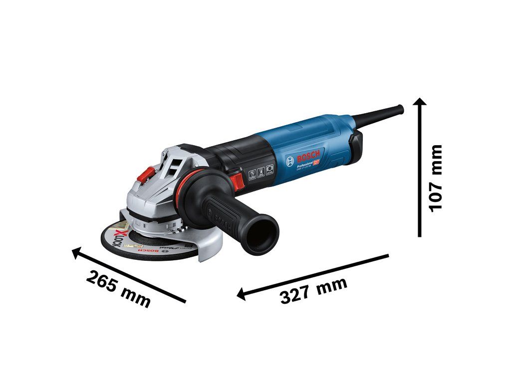 Úhlová bruska GWS 17-125 SB, GWS 17-125 SB Professional s funkcemi Speed Selection a Intelligent Brake System, která zajišťuje rychlé zastavení příslušenství po vypnutí nářadí. Vylepšená ochrana vůči prachu díky průduchům na zadní straně nářadí a výrazně štíhlejší rukojeť zaručují vysoký výkon a maximální produktivitu. Funkce Drop Control, KickBack Control, Restart Protection a postranní rukojeť s funkcí Vibration Control zaručují vysokou úroveň ochrany uživatele. GWS 17-125 SB Professional se dokonale hodí na broušení kovu či svarů a dělení kovu, betonu, cihel a obkladů. Je kompatibilní se systémy na odsávání prachu Bosch GDE 125 EA-T Professional a GDE 115 / 125 FC-T Professional. Mezi další funkce patří Speed Selection, Constant Speed, Soft Start a Overload Protection. Kartonová krabice; Přídavná rukojeť s tlumením vibrací (2 608 900 000); Ochranný kryt (1 605 510 365); Nacvakávací ochranný kryt na řezání – kov (2 608 000 756); Kolíkový klíč (1 607 950 043); Upínací příruba (1 605 703 099); Upínací matice (1 603 340 040); Filtr na prach (2 607 432 053); Rychloupínací matice SDS (1 603 340 031)Doplňkové parametry