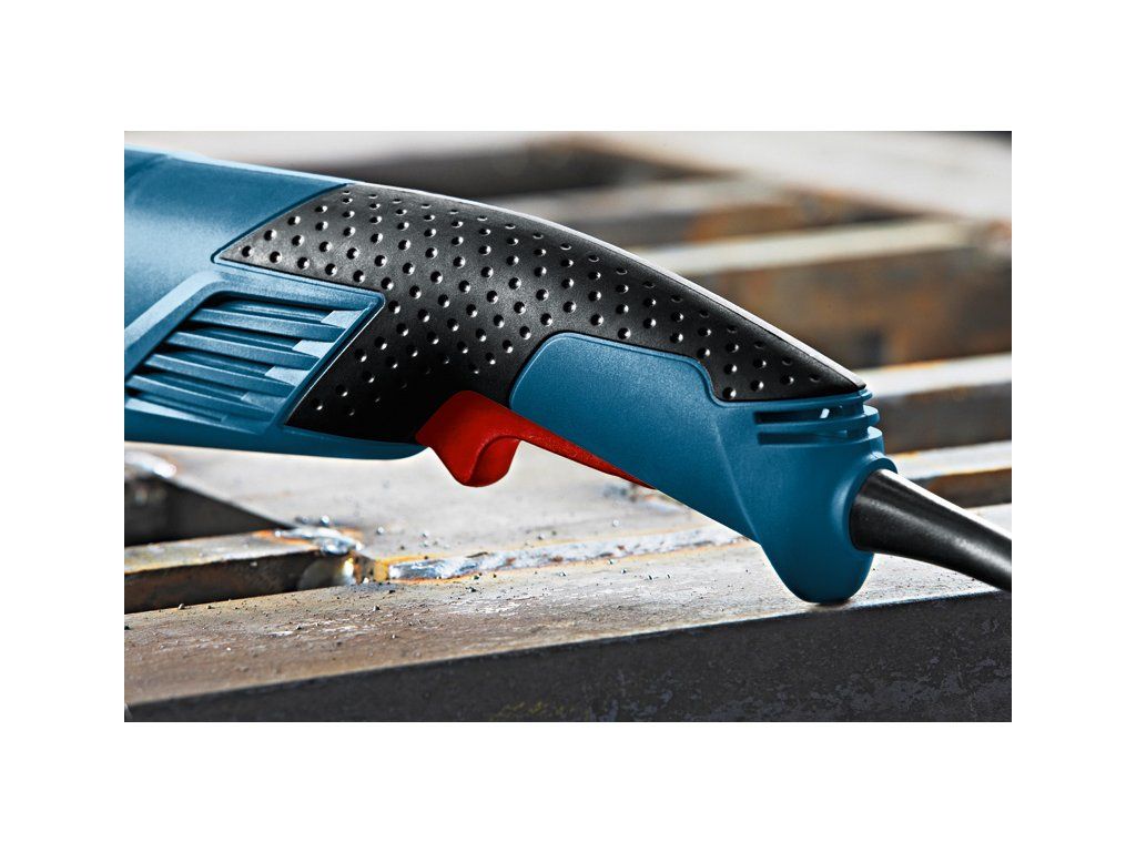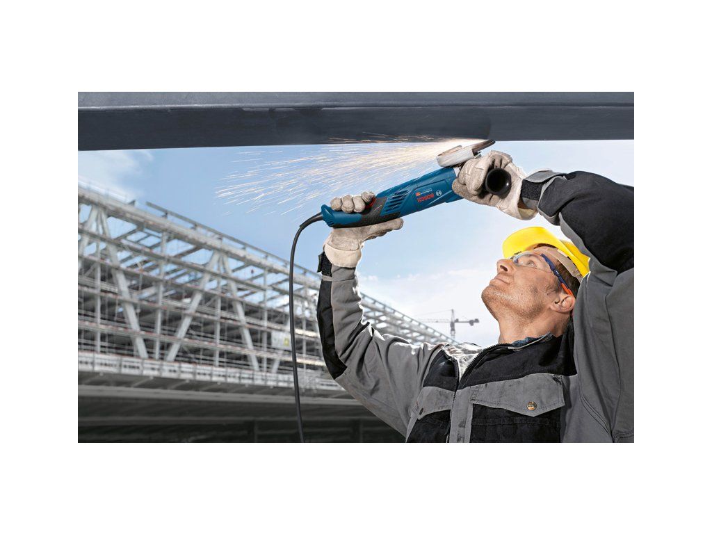 Úhlová bruska GWS 18-150 L, Malá síťová bruska GWS 18-150 L Professional poskytuje vysoký výkon a ergonomický design v kategorii 1 800 W. Její výkonný 1 800W motor s konstantní elektronikou zajišťuje nejefektivnější pracovní výsledky. Její dlouhá a štíhlá hlavní rukojeť nabízí vynikající pohodlí při dlouhodobém používání a práci nad hlavou. Funkce KickBack Control a rukojeť s funkcí Vibration Control navíc zajišťuje zvýšenou ochranu uživatele. Toto nářadí je určené na broušení kovu. GWS 18-150 L Professional obsahuje také funkce, jako je ochrana proti přetížení, ochrana proti opětovnému spuštění, pozvolný rozběh a Vibration Control. Upínací příruba (číslo náhradního dílu 2 605 703 014); Upínací matice (1 603 340 040); Ochranný kryt (1 605 510 366); Kolíkový klíč (1 607 950 043); Přídavná rukojeť s tlumením vibrací (2 602 025 171)Doplňkové parametry