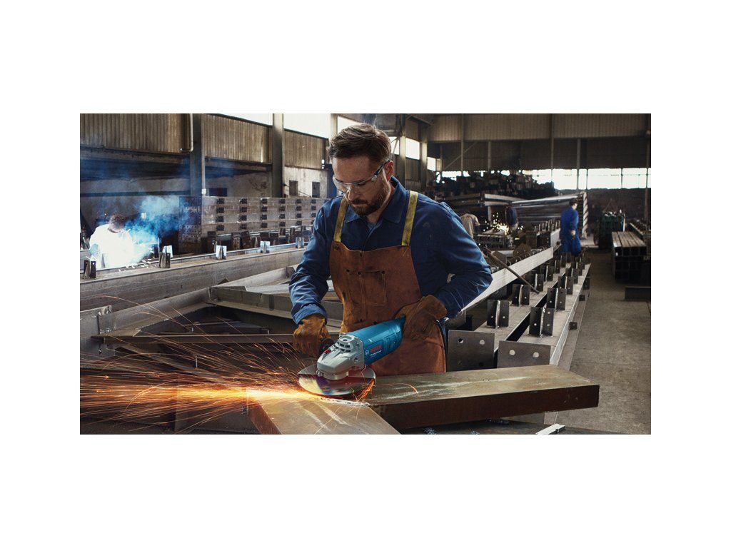 Úhlová bruska GWS 2200, Vysoká rychlost úběru materiálu. Nový patentovaný motor Bosch zajišťuje nejlepší výkonnost ve své třídě. Menší zahřívání celého systému vede k prodloužené životnosti nářadí. Delší životnost uhlíků. Vylepšený kontakt s motorem zaručuje delší životnost uhlíků. Nízká poruchovost díky robustním součástkám. Kolíkový klíč (1 607 950 061); Upínací příruba (číslo náhradního dílu 2 605 703 014); Upínací matice (1 603 345 043); Kartonová krabice; Ochranný kryt (1 619 P15 622); Přídavná rukojeť ( 1 602 025 030)Doplňkové parametry