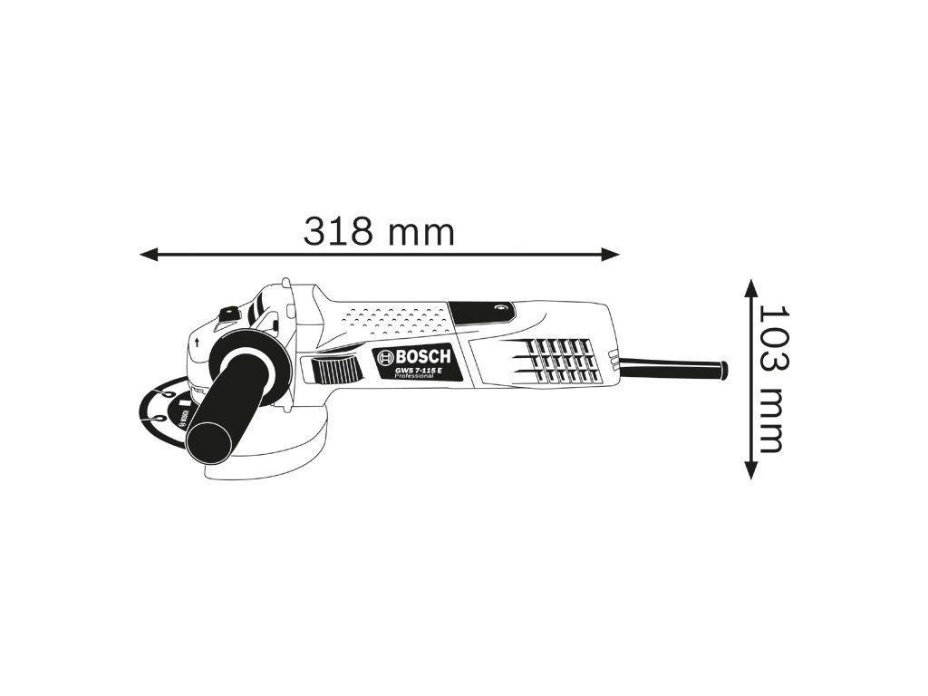 Úhlová bruska GWS 7-115 E, Tato síťová malá úhlová bruska s předvolbou rychlosti má nejmenší velikost rukojeti v kategorii 720 W. Díky malé velikosti rukojeti 176 mm nabízí nejlepší ergonomii pro práci s nízkou únavou. Tato malá úhlová bruska má také plochou převodovou hlavu, která zajišťuje dobrý pracovní postup i v úzkých prostorech. Funkce volby rychlosti navíc umožňuje široké spektrum použití. Toto nářadí je určeno na řezání kovu, dlaždic a cihel. Je kompatibilní s prachovým nástavcem GDE 125 EA-S Professional a systémem Bosch Click & Clean. Toto nářadí je také vybaveno přímým chlazením motoru, ochranným krytem a ochranou proti opětovnému spuštění. Přídavná rukojeť (1 602 025 024); Upínací příruba (číslo náhradního dílu 2 605 703 014); Upínací matice (1 603 340 040); Ochranný kryt (1 619 P06 547); Dvoukolíkový klíč (číslo náhradního dílu 1 607 950 060)Doplňkové parametry