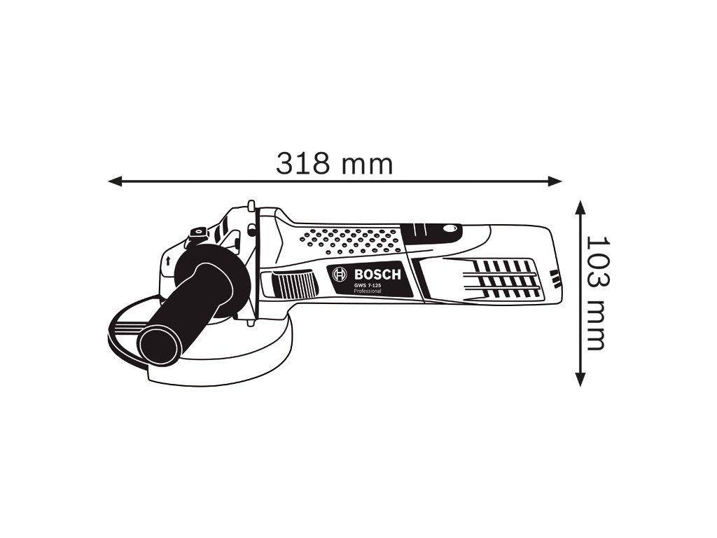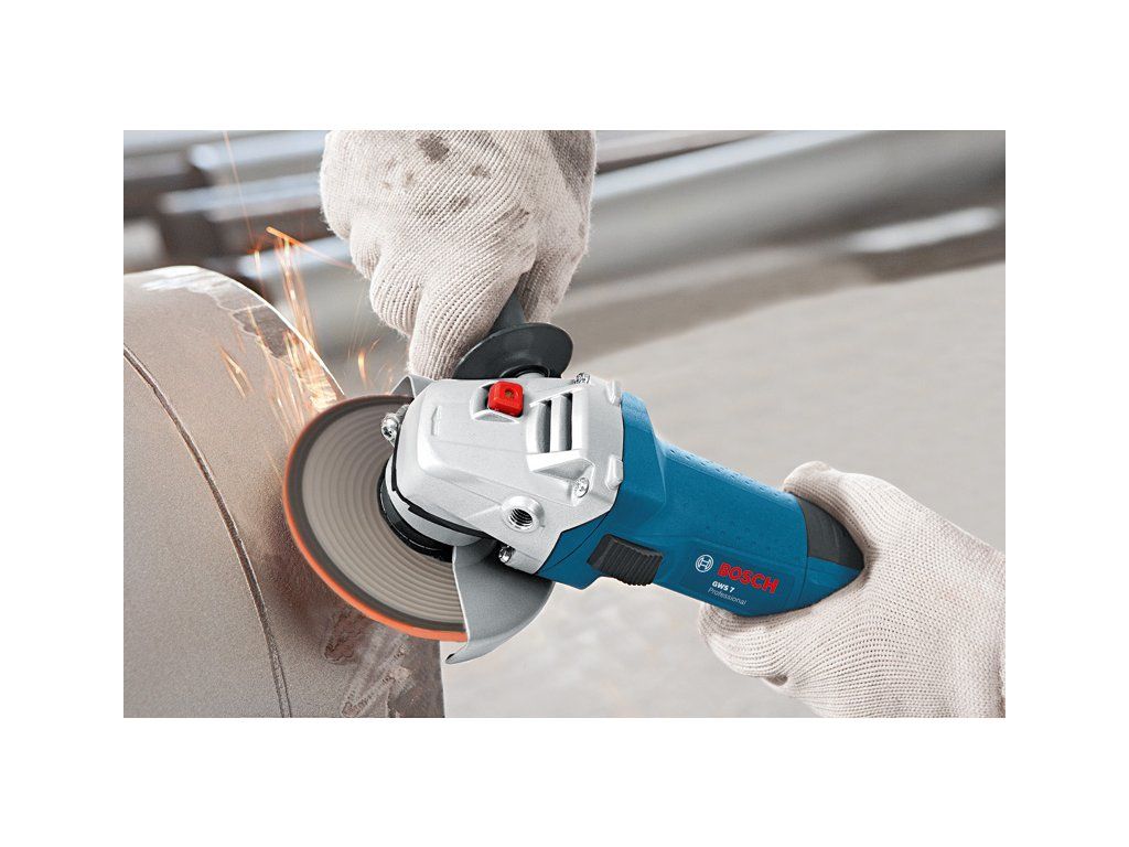 Úhlová bruska GWS 7-125, Síťová malá úhlová bruska GWS 7-125 Professional má nejmenší velikost rukojeti v kategorii 720 W. Díky malé velikosti rukojeti 176 mm nabízí nejlepší ergonomii pro práci s nízkou únavou. Tato malá úhlová bruska má také plochou převodovou hlavu, která zajišťuje dobrý pracovní postup i v úzkých prostorech. Kompaktní motor s příkonem 720 W navíc poskytuje nejlepší poměr výkonu a úchopu, což umožňuje nepřetržité používání. Toto nářadí je určeno na řezání kovu, dlaždic a cihel. Je kompatibilní s prachovým nástavcem GDE 125 EA-S Professional a systémem Bosch Click & Clean. GWS 7-125 Professional je také vybavena přímým chlazením motoru, ochranným krytem a ochranou proti opětovnému spuštění. Přídavná rukojeť (1 602 025 024); Upínací příruba (číslo náhradního dílu 2 605 703 014); Upínací matice (1 603 340 040); Ochranný kryt (1 619 P06 548); Kolíkový klíč (1 607 950 043)Doplňkové parametry