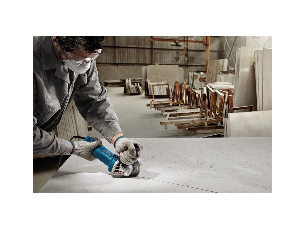 Úhlová bruska GWS 750, Tato malá síťová úhlová bruska nabízí solidní výkon pro řezání a broušení. Její štíhlá rukojeť umožňuje lepší manipulaci a snadné použití. Tato malá úhlová bruska má také plochou převodovou hlavu, která zajišťuje dobré výsledky práce i v úzkých prostorech. Speciálně vyvinuté větrací otvory navíc poskytují lepší ochranu proti prachu a dlouhou životnost. Toto nářadí je určeno na řezání a broušení kovu, dlaždic a cihel. Úhlová bruska je také vybavena ochranným krytem a ochranou proti opětovnému spuštění. Přídavná rukojeť; Upínací příruba; Kartonová krabice; Upínací matice; Ochranný kryt; Kolíkový klíčDoplňkové parametry