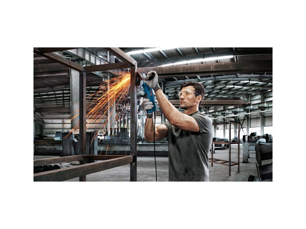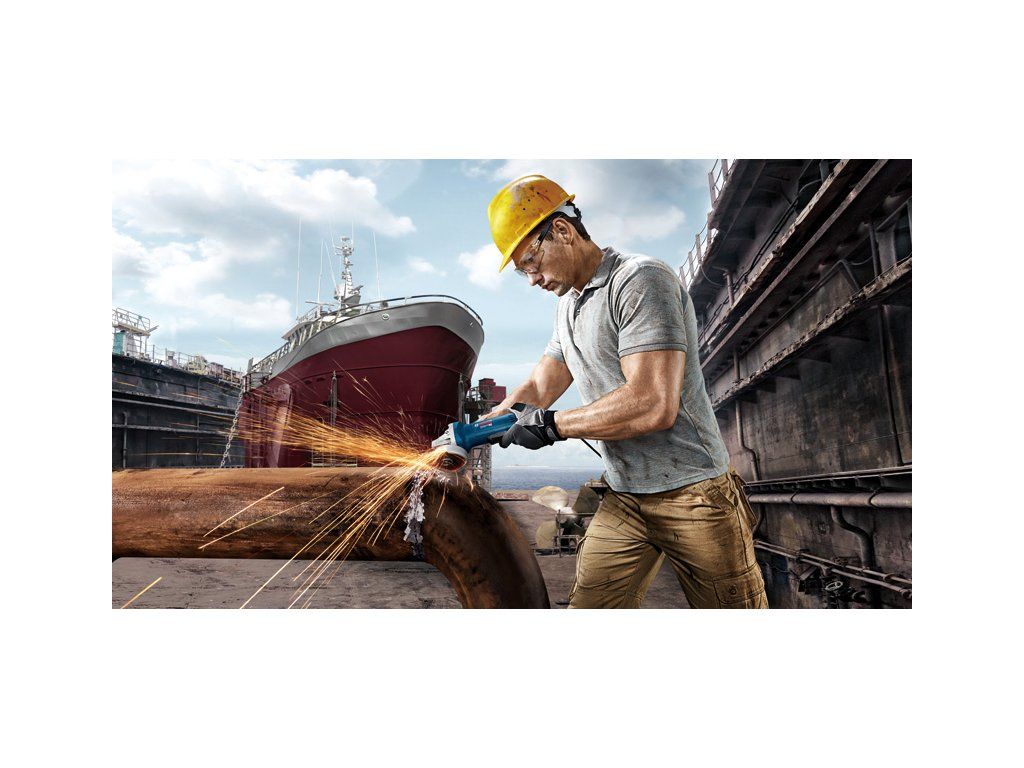 Úhlová bruska GWS 9-115 P, GWS 9-115 P Professional nabízí vylepšenou ochranu uživatele díky posuvnému spínači PROtection, který okamžitě přeruší napájení, když je uvolněn spínač. Tato úhlová bruska se vyznačuje vysoce efektivním 900W motorem a zajišťuje vynikající řezný a brusný výkon i vylepšené ovládání díky ergonomickému designu páčky a štíhlému úchopu. Ideální na rozmanité řezací a brousicí práce. Díky své robustní konstrukci a komponentům nabízí GWS 9-115 P dlouhou životnost v náročných pracovních podmínkách. Kartonová krabice; Ochranný kryt (1 619 P06 547); Přídavná rukojeť (1 602 025 024)Doplňkové parametry