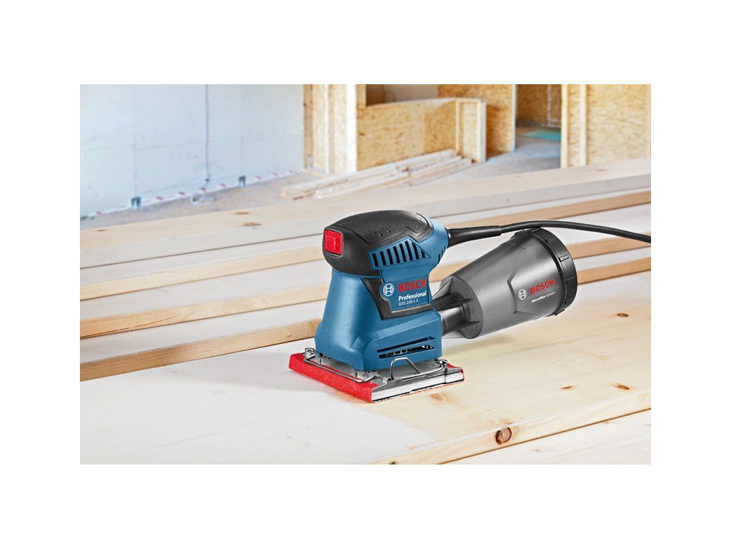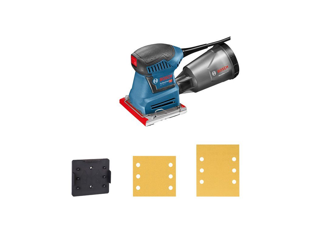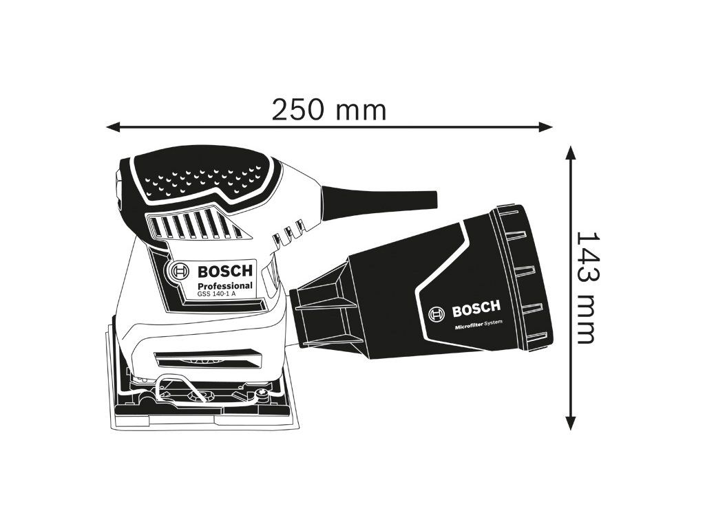 Vibrační bruska GSS 140-1 A, Toto je kompaktní a ergonomická síťová vibrační bruska Bosch s robustním upínacím systémem na malé plochy. Vyznačuje se ergonomickou opěrkou dlaně a kompaktním designem pro snadné a pohodlné ovládání. Robustní kovová deska zaručuje odolnost pro dlouhodobé používání. Upínací systém s podložkou se suchým zipem zajišťuje snadnou výměnu brusného papíru. Vibrační bruska je určena na malé rovné plochy, mezibroušení a dokončování povrchů. Lze použít na dřevo, dýhu, lak, plniva i minerály a akryl. Je kompatibilní se systémem Bosch Click & Clean. Toto nářadí je vybaveno nádobou na prach s vestavěným mikrofiltračním systémem Bosch a vyměnitelnými podložkami a díky svému designu umožňuje ovládání jednou rukou. Kartonová krabice; Děrovací nástroj (2 608 190 059); Brusný papír 120 K; Box na prach (2 605 411 240) vč. mikrofiltru (2 605 411 241); 1× brusný list C470, Best for Wood + Paint, 120 (dostupný samostatně jako sada 10 ks: 2 608 607 458); Základní deska, 113 × 101 mm (2 608 601 446) s brusnou deskou (2 608 601 443)Doplňkové parametry
