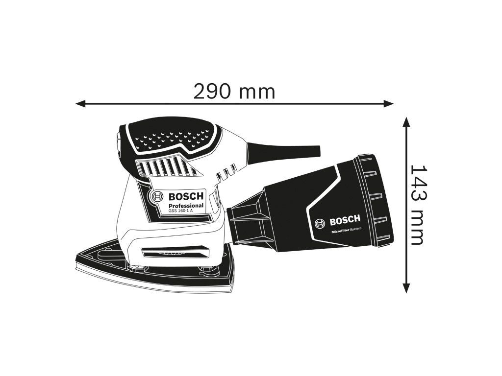 Vibrační bruska GSS 160 Multi, GSS 160 Professional Multi je kompaktní a ergonomická síťová vibrační bruska od firmy Bosch, která je schopná zvládat různé úkoly, včetně broušení v rozích. Ergonomická opěrka dlaně zajišťují snadné a pohodlné ovládání. Součástí jsou tři vyměnitelné podložky, které umožňují práci na okrajích a v rozích i na menších plochých površích. Nádoba na prach je osazena vestavěným mikrofiltračním systémem Bosch zajišťujícím efektivní odsávání prachu pro prakticky bezprašnou práci Tato vibrační bruska je určena na mezibroušení, dokončování povrchů a broušení v rozích a na menších plochých površích. Lze použít na dřevo, dýhu, lak, plniva i minerály a akryl. Je kompatibilní se systémem Bosch Click & Clean. GSS 160 Professional Multi obsahuje též upínací systém se suchým zipem na připevnění brusného papíru a díky svému designu umožňuje používání jednou rukou. L-BOXX 136 (1 600 A01 2G0); Vložka pro L-BOXX; Děrovací nástroj (2 608 190 059); Šroubovák; Box na prach (2 605 411 240) vč. mikrofiltru (2 605 411 241); 1× brusný list C470, Best for Wood + Paint, 120 (dostupný samostatně jako sada 10 ks: 2 608 607 232); 1× brusný list C470, Best for Wood + Paint, 120 (dostupný samostatně jako sada 10 ks: 2 608 607 458); 1× brusný list C470, Best for Wood + Paint, 120 (dostupný samostatně jako sada 10 ks: 2 608 608 Z96); Základní trojúhelníková deska, 100 × 150 mm (2 608 601 448) s brusnou deskou (2 608 601 445); Základní deska, 113 × 101 mm (2 608 601 446) s brusnou deskou (2 608 601 443); Základní deska, 80 × 130 mm (2 608 601 447) s brusnou deskou (2 608 601 444)Doplňkové parametry