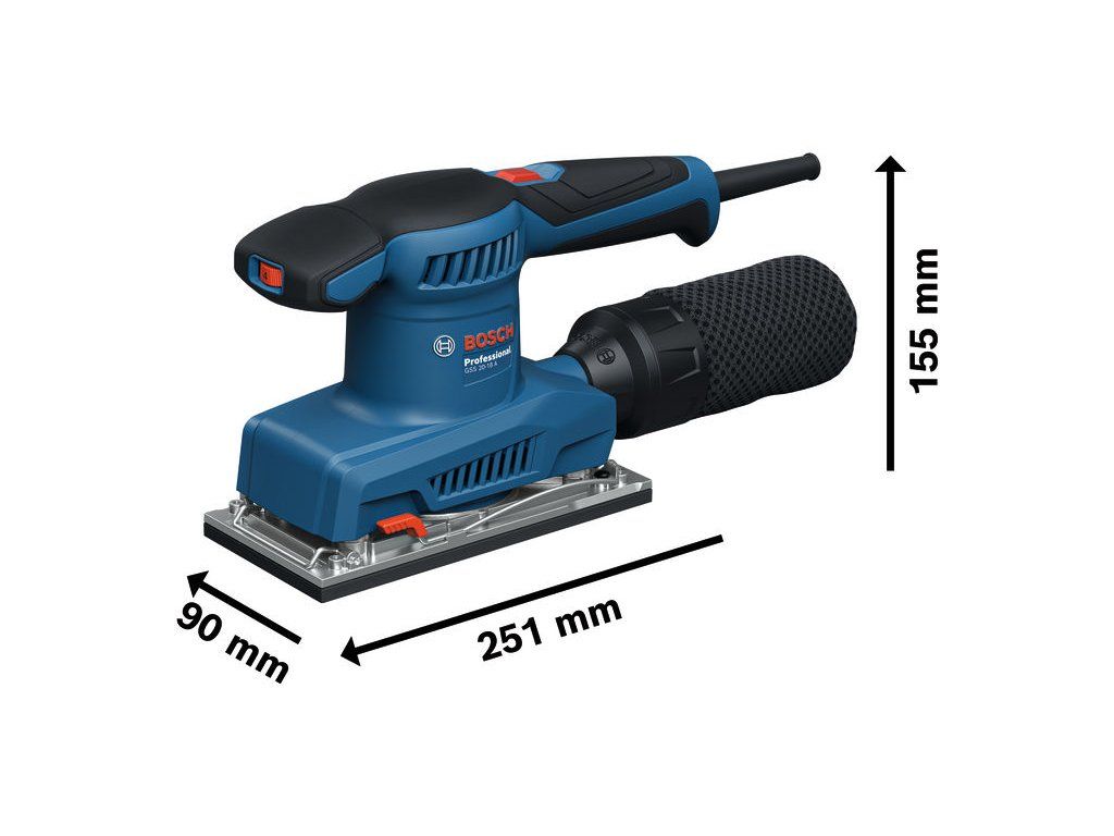 Vibrační bruska GSS 20-18 A, Pokud hledáte výkonnou brusku navrženou pro pohodlí, vibrační bruska Bosch GSS 20-18 Professional je to pravé nářadí pro vás. Díky nízké hodnotě vibrací maximálně 3,0 m/s2 můžete pracovat delší dobu, aniž byste se unavili nebo vám znecitlivěla ruka. Optimální vyvážení nářadí navíc usnadňuje broušení ve všech směrech, jednou nebo oběma rukama. Tato vysoce pohodlná bruska je navíc vybavena ergonomickou protiskluzovou rukojetí pro práci bez námahy. Vibrační bruska Bosch GSS 20-18 Professional je ideální pro instalatéry skříní a tesaře. Můžete ji použít k broušení velkých ploch před lakováním, vyhlazování spár a k broušení hran. Vibrační bruska Bosch GSS 20-18 Professional je nářadí s nízkými vibracemi, které je navrženo s optimálním vyvážením pro použití jednou nebo oběma rukama a ergonomickou protiskluzovou rukojetí. Vybavena také mechanickým systémem odolným proti prachu a ochranou spínače. 1× sáček na prach (1 619 PS1 104); 1× děrovací deska (1 619 PS1 082); Kartonová krabiceDoplňkové parametry