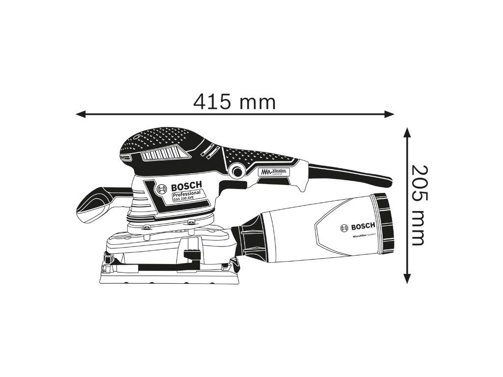 Vibrační bruska GSS 230 AVE, GSS 230 AVE je profesionální síťová vibrační bruska od firmy Bosch kategorie 230 mm pro vysoce kvalitní opracování povrchu. Vysoce kvalitního opracování povrchu se dosahuje díky konstrukci s oddělenou brusnou jednotkou pro rovnoměrný přítlak. Jedinečná vestavěná technologie zajišťuje tlumení vibrací na minimum a tím umožňuje nepřetržitou práci. Brusný papír se snadno a dokonale připevňuje pomocí podložky se suchým zipem a upínacího systému. Je určená na broušení, mezibroušení povrchů a rámů, včetně finálních povrchových úprav. Lze použít na dřevo, dýhu, lak, plniva i minerály a akryl. Je kompatibilní se systémem Bosch Click & Clean. GSS 230 AVE Professional zahrnuje rovněž nádobu na prach s vestavěným mikrofiltračním systémem Bosch i možnost volby rychlosti. Kartonová krabice; 1× brusný list C470, Best for Wood + Paint, 80 (dostupný samostatně jako sada 10 ks: 2 608 605 255); 1× brusný list C470, Best for Wood + Paint, 120 (dostupný samostatně jako sada 10 ks: 2 608 605 256); 1× brusný list C470, Best for Wood + Paint, 180 (dostupný samostatně jako sada 10 ks: 2 608 605 257); Přídavná rukojeť (2 602 026 175)Doplňkové parametry