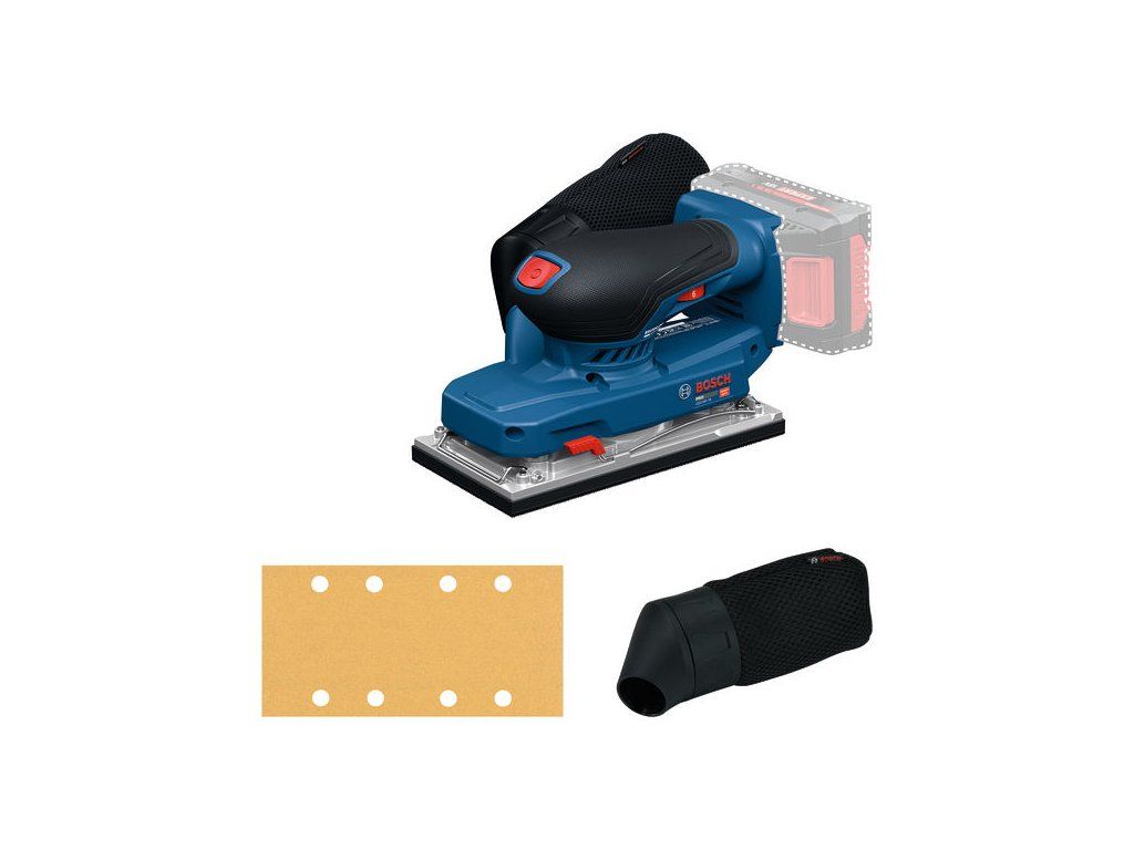 Vibrační bruska GSS18V-18, Akumulátorové nářadí PRO GSS 18V-18 je navrženo pro optimální ovládání díky své nízké výšce až 118 mm a vynikajícímu vyvážení. Díky nízké hodnotě vibrací až 3,5 m/s² můžeš pracovat delší dobu, aniž by ses unavil nebo ti znecitlivěla ruka. Tato bruska je vybavena účinným řešením odvodu prachu s vysokou mírou odsávání prachu 85 % a snadnou likvidací prachu. GSS 18V-18 je určena k broušení dřevěných nebo kovových povrchů a hran, suchých stěn/omítek, broušení povrchů před lakováním a odstraňování starých nátěrů. Je kompatibilní se systémem Bosch Click&Clean. Toto nářadí má vysoce účinný systém bezuhlíkového motoru s dobou chodu až 35 minut. Má posunutý design akumulátoru pro pohodlnou práci blízko zdi. Kartonová krabice; 1× brusný list C470 (2 608 608 614); Sáček na prachDoplňkové parametry