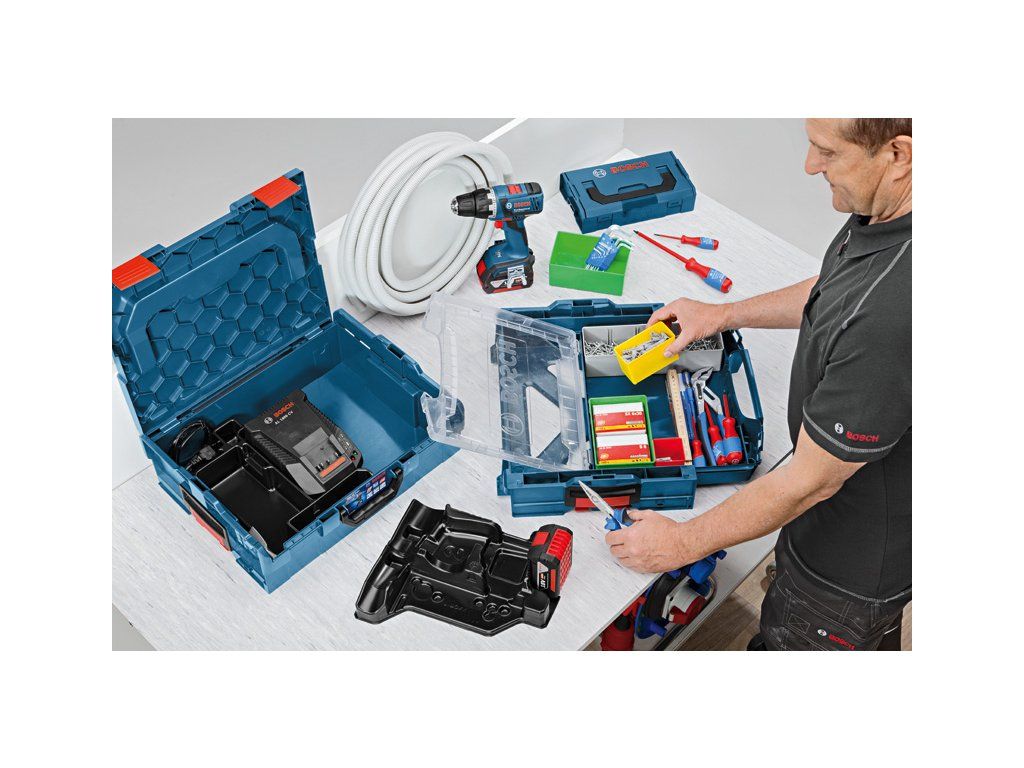 Vložky pro uložení nářadí pro GLI 12V-80, Všechno bezpečně uloženo, Vhodné pro GLI 12V-80, Poloviční vložka pro L-BOXX 102, Flexibilní použití dvou polovičních vložek v L-BOXXu Bosch umožňuje kombinaci jednoho 12V nářadí a příslušenství, dvou 12V nářadí nebo různého příslušenstvíDoplňkové parametry