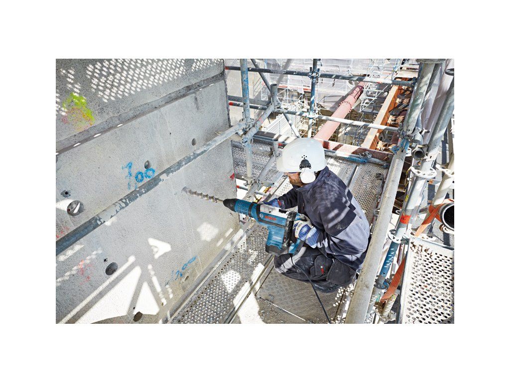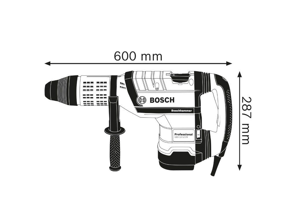 Vrtací kladivo s SDS max GBH 12-52 DV, Toto je nejodolnější nářadí v řadě síťových vrtacích kladiv Bosch SDS max s funkcí Vibration Control. Vyznačuje se vysoce kvalitním motorem zajišťujícím špičkovou výkonnost v aplikacích SDS max. Neuvěřitelně silný motor vrtacího kladiva zajišťuje úžasných 19 J příklepové energie, která se dokonale hodí na náročné sekání. Pyšní se rovněž vysoce odolnou konstrukcí s mimořádně robustními kovovými díly. Toto nářadí je určeno pro vrtání do průměru 52 mm a těžké sekací práce do betonu a kamene. Je kompatibilní s různými nástavci na odsávání prachu. Toto vrtací kladivo nabízí funkce Constant Speed, Restart Protection, Rotation Control Clutch, Speed Selection a Vibration Control pro snadnou a nepřetržitou práci v časově náročných aplikacích. Příruční kufr (číslo náhradního dílu 1 615 438 705); 1× přídavná rukojeť (1 607 000 C4E); Tuba s mazacím tukem (číslo náhradního dílu 1 615 430 010); Utěrka na nářadíDoplňkové parametry