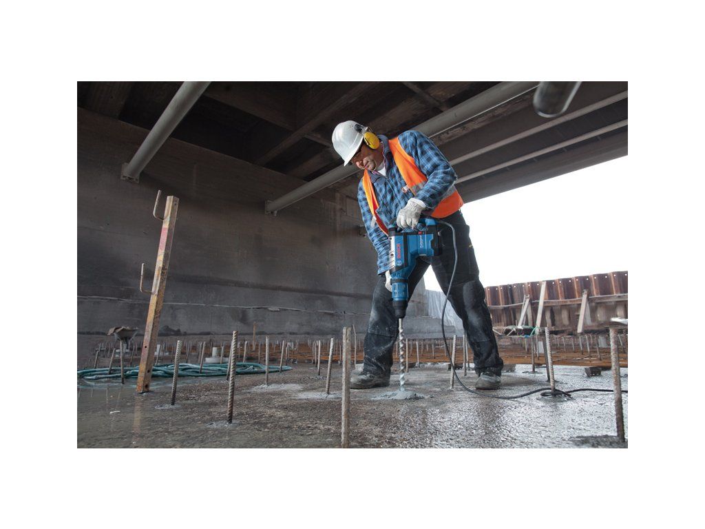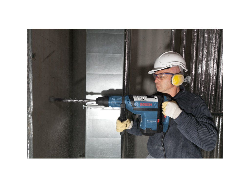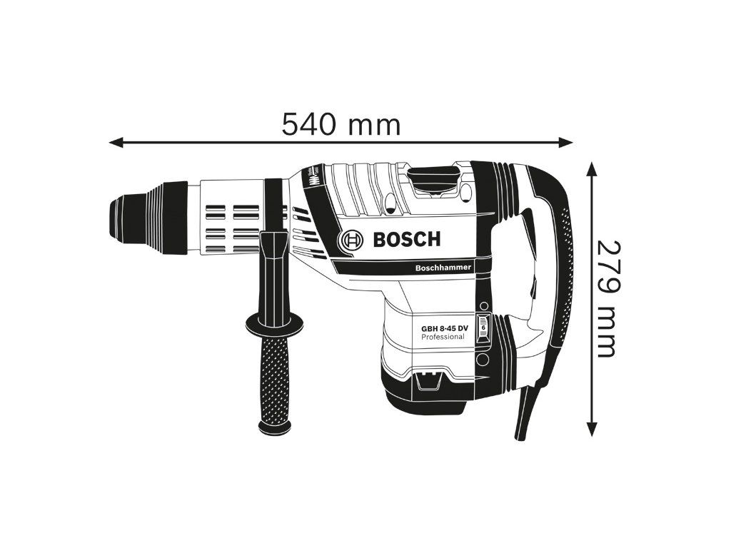 Vrtací kladivo s SDS max GBH 8-45 DV, GBH 8-45 DV Professional s funkcí Vibration Control je všestranné výkonné nářadí v kategorii síťových vrtacích kladiv SDS max díky svým univerzálním schopnostem. Dokonalý poměr výkonu a hmotnosti mu umožňuje snadno provádět celou řadu úloh pro nářadí SDS max a nabízí rovnováhu mezi sílou a lehkostí použití. Toto vrtací kladivo rovněž obsahuje robustní kovové součástky pro ještě vyšší odolnost. Silný motor zajišťuje příklepovou energii 12,5 J pro rychlý postup vrtání a sekání. Toto nářadí je určeno pro vrtání do průměru 45 mm a střední sekací práce do betonu a kamene. Je kompatibilní s různými nástavci na odsávání prachu. GBH 8-45 DV Professional obsahuje funkce, jako je Constant Speed, Restart Protection, Rotation Control Clutch, Speed Selection a Vibration Control, pro snadnou a nepřetržitou práci v časově náročných aplikacích. Přídavná rukojeť (číslo náhradního dílu 1 612 025 004); Tuba s mazacím tukem (číslo náhradního dílu 1 615 430 010); Utěrka na nářadí; Příruční kufr (číslo náhradního dílu 1 615 438 51A)Doplňkové parametry