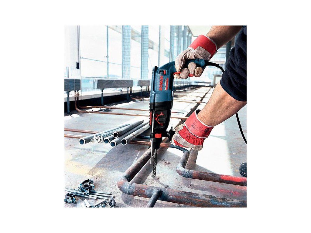 Vrtací kladivo s SDS plus GBH 2-26 DRE, Rychlý všestranný talent pro každodenní používání, Rychlé provedení práce dané rychlým postupem vrtání a vysokým výkonem sekání díky silnému motoru 800 W a energii příklepu 2,7 J, Spolehlivé a robustní s dlouhou životností díky vysoce kvalitním součástem, Mnohostranné použití s blokováním otáčení pro sekací práce, Hloubkový doraz 210 mm (1 613 001 010); Přídavná rukojeť ( 2 602 025 141); L-Case (1 605 438 1CR)Doplňkové parametry