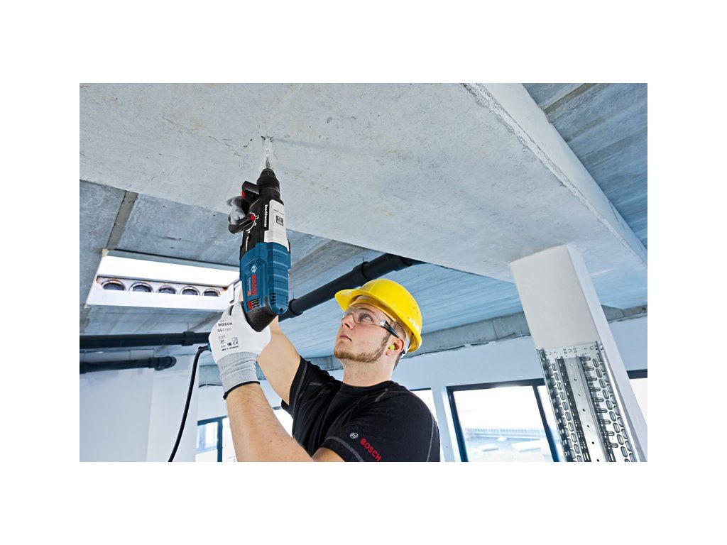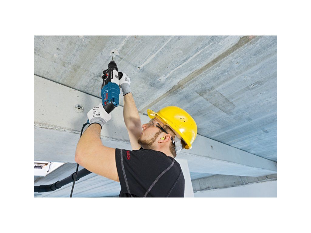 Vrtací kladivo s SDS plus GBH 2-28, Jedná se o nejsilnější nářadí v kategorii 2kg síťových vrtacích kladiv SDS plus firmy Bosch. Robustní motor zajišťuje mimořádnou příklepovou energii 3,2 J pro vysoce účinné vrtání. Vrtací kladivo se rovněž vyznačuje funkcemi KickBack Control pro vyšší ochranu uživatele a Vibration Control pro snadnou dlouhodobou práci bez přerušování. Toto nářadí je určeno na vrtání a sekání do betonu, zdiva, dřeva a kovu. Je kompatibilní s různými nástavci na odsávání prachu. Nářadí nabízí také funkce, jako je Reverse Mode, Rotation Control Clutch, Variable Speed a Vario-Lock. Přídavná rukojeť ( 2 602 025 141); Hloubkový doraz 210 mm (1 613 001 010); Utěrka na nářadí; L-Case (1 605 438 1CR)Doplňkové parametry