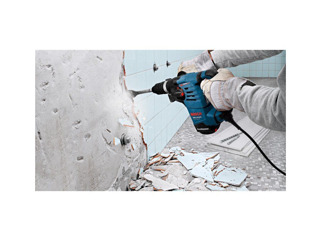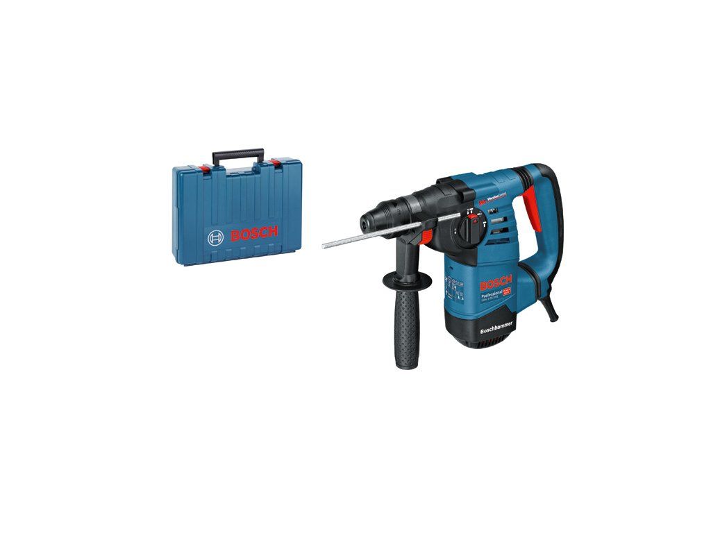 Vrtací kladivo s SDS plus GBH 3-28 DRE, Jedná se o nejvšestrannější nářadí v kategorii síťových vrtacích kladiv SDS plus od firmy Bosch. Jeho kompaktní tělo umožňuje různé způsoby použití v úzkých a těsných pracovních prostorech. Design ve tvaru písmene L zajišťuje vyvážené rozložení hmotnosti a pohodlí a funkce Vibration Control zase zaručuje práci bez přerušování. Pyšní se vynikajícím poměrem výkonu a hmotnosti s 800W motorem a hmotností nářadí pouhých 3,6 kg. Toto nářadí je určeno na vrtání a lehké sekání do betonu, zdiva, dřeva a kovu. Je kompatibilní s různými nástavci na odsávání prachu. Toto nářadí je také vybaveno rychloupínacím sklíčidlem pro vrtáky s kulatou stopkou, rychloupínacím sklíčidlem (SDS plus), Reverse Mode, Rotation Control Clutch, Variable Speed a Vario-Lock. Přídavná rukojeť ( 2 602 025 191); Příruční kufr (2 605 438 651); Hloubkový doraz 210 mm (1 613 001 010); Tuba s mazacím tukem (číslo náhradního dílu 1 615 430 010); Utěrka na nářadíDoplňkové parametry