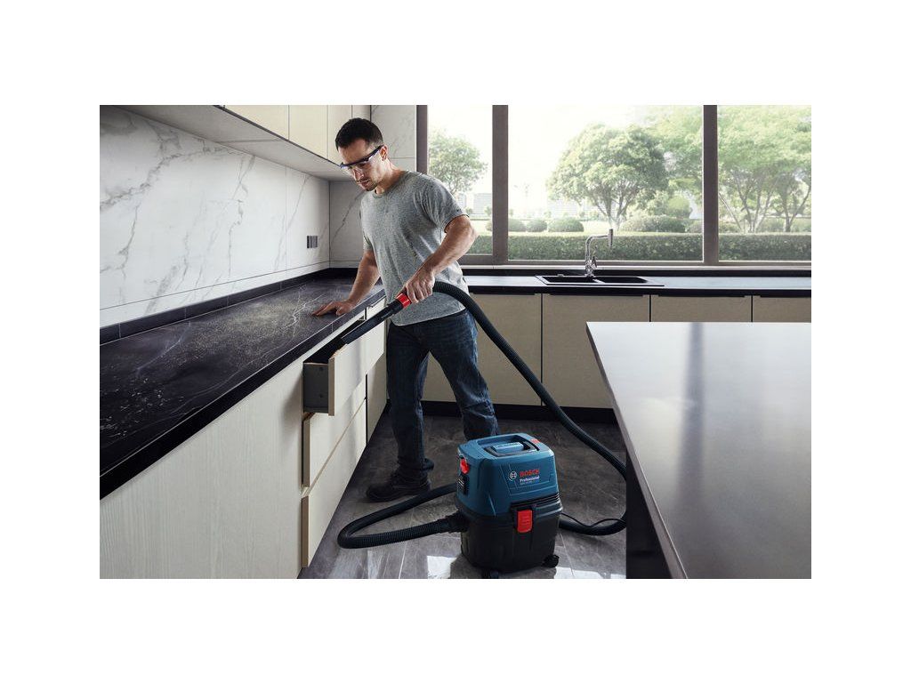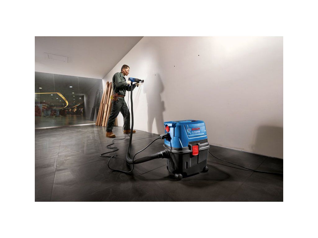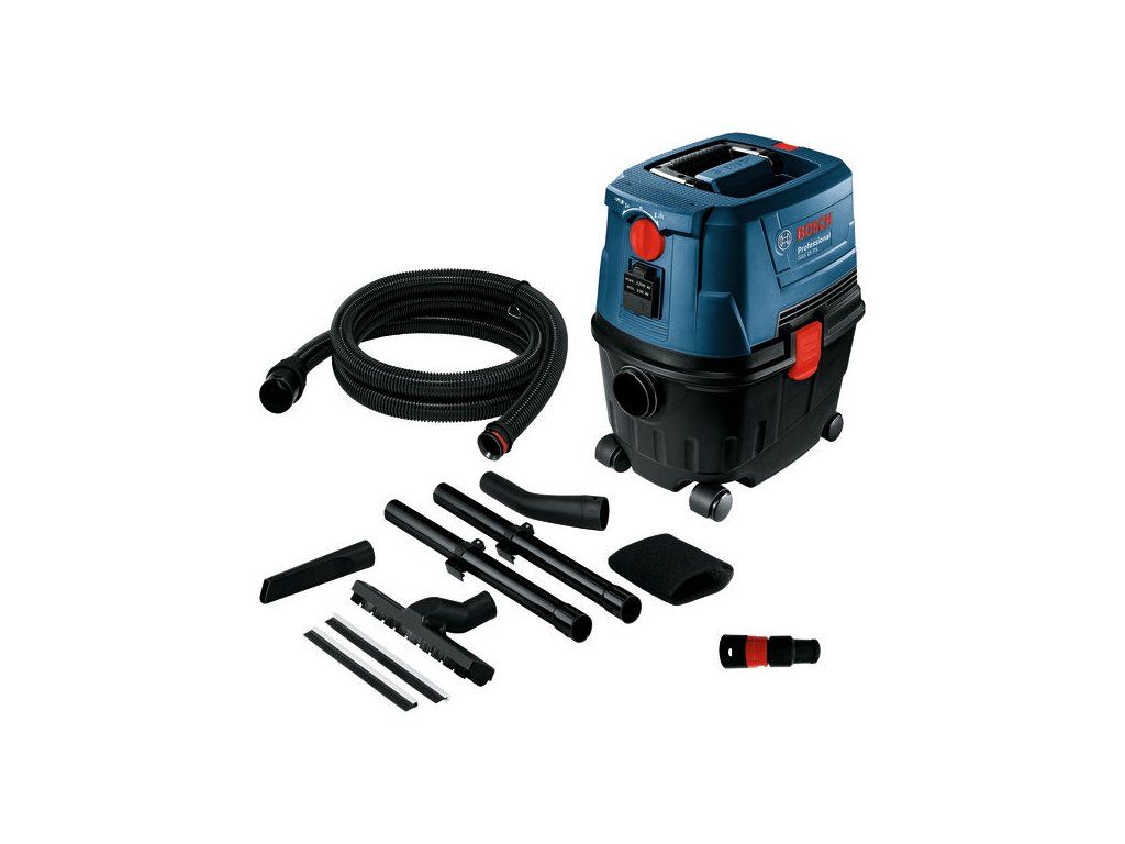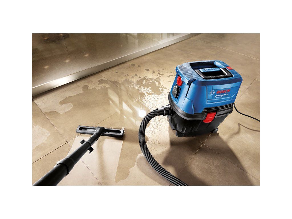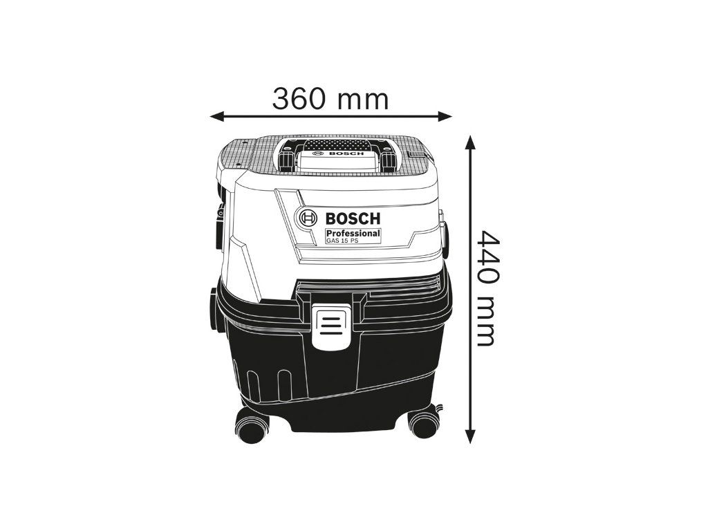Vysavač na suché a mokré vysávání GAS 15 PS, GAS 15 PS Professional je všestranný vysavač, který můžete snadno přemisťovat po pracovišti pro mokré i suché použití. Má inovativní systém uchycení sáčků, který je kompatibilní s univerzálními sáčky pro použití v domácnost i v průmyslu. Díky poloautomatickému systému čištění filtru (SFC) je čištění filtru rychlé a jednoduché. Tento kompaktní vysavač s hmotností méně než 10 kg má hrubý objem nádoby 15 l, pohodlně se skladuje a snadno přepravuje díky mobilním kolečkům. Rozhraní Click & Clean vám navíc umožní snadno a bezproblémově připojit vysavač k elektrickému nářadí Bosch. Vysavač GAS 15 PS Professional je vybaven integrovaným portem určeným pro foukání, který můžete používat po jednoduchém připojení hadice (k dispozici samostatně). Vysavač GAS 15 PS Professional je vhodný na vysávání prachu ze sádrokartonu a nečistot. Spárová hubice; Koleno; Sada podlahových hubic; 1× hadice 3 m (2 608 000 570); Trubky (2 ks); Nářadí, objímkaDoplňkové parametry
